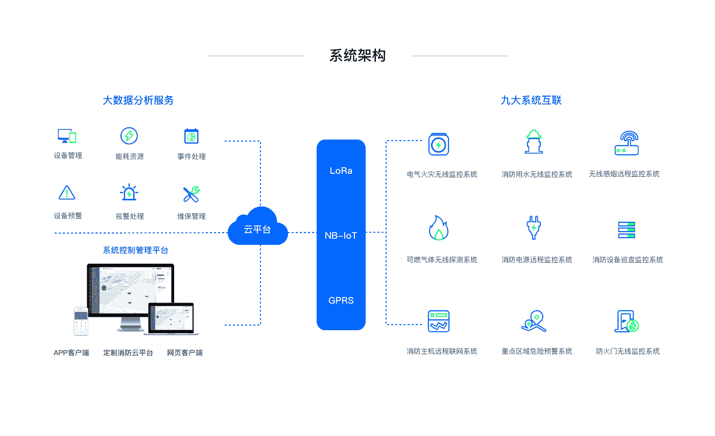 通过对云计算、物联网、大数据、GIS等现代信息技术的综合利用,大力创新消防管理模式,开展智慧防控、作战、执法和管理,最终实现对火灾防控的自动化管理,对灭火救援的智能化管理,对执法工作的系统化管理以及对管理运营的精细化管理
